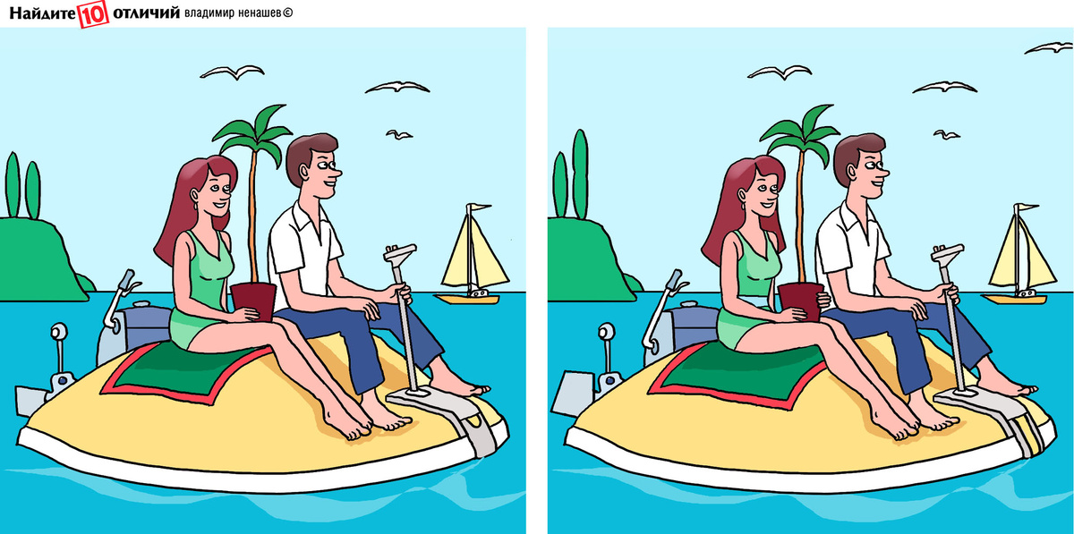 10 отличий. Тест на внимание. Позитивный рисунок поможет найти отличия.
