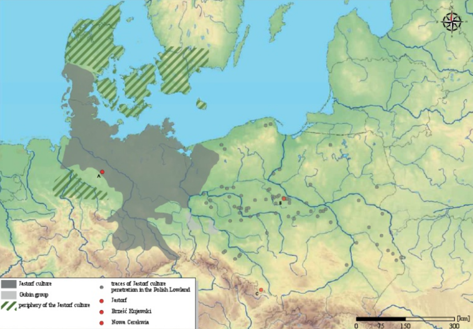 · Археологически это связывают с Ясторфской культурой (примерно VI-I вв. до н.э.), которая демонстрирует четкие отличия от соседних кельтских (латенских) культур на юге и балтийских на востоке. Для Ясторфской культуры характерны специфические формы керамики, обряд трупосожжения и особенности ведения хозяйства, что позволяет археологам считать её прямым предшественником германского мира.