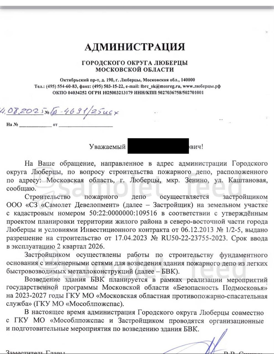 Администрация г.о. Люберцы ответила по поводу строительства пожарного депо в нашем ЖК. По паспорту объекта строительство уже должнобыло завершиться, но на данный момент оно еще даже не началось. Из ответа мы узнали, что ввод в эксплуатацию запланирован на II квартал 2026 года. Каким образом построят его так быстро — непонятно. ________ Присылать новость @mstislavz 👉 Обсудить в чате ЖК 👉 Подписаться на канал