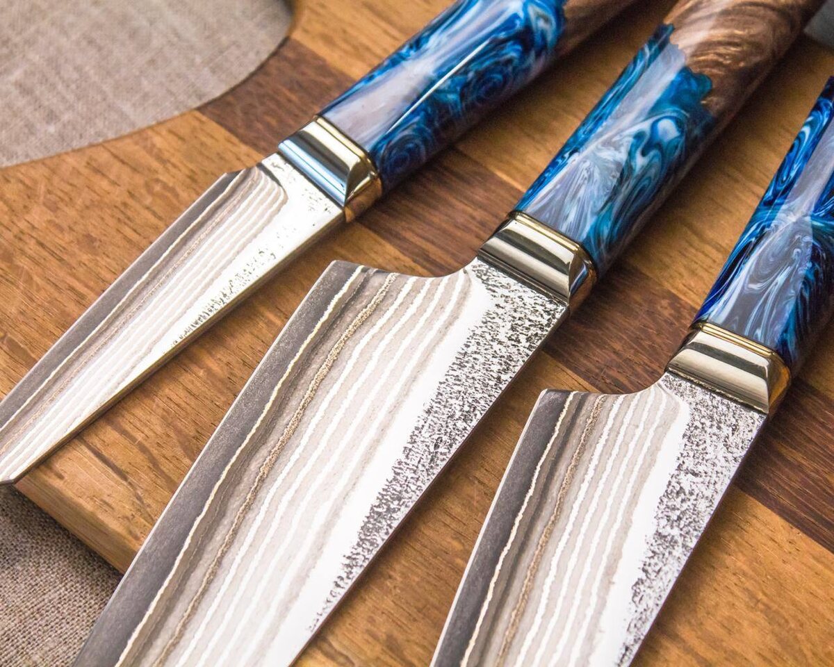Для Робинзона Крузо простой столовый нож стоил дороже всего золота мира. По счастью, мы с вами не на необитаемом острове, так что обзавестись ножом для нас не проблема. А вот найти подходящий на разные случаи жизни гораздо сложнее. Для одних ножи делятся на большие и маленькие. Кто-то собирает в памяти целую картотеку специализированных приборов. На самом деле, для оптимального результата на кухне достаточно иметь всего лишь три ножа: универсальный шеф-нож для мяса и рыбы, средний нож (около 150 миллиметров) для более точной нарезки продуктов и, наконец, небольшой овощной нож для шинковки. Именно такой базовый набор предлагают наши друзья из фирмы Berёza в Костроме. Для изготовления этих ножей использованы высокоуглеродистая японская сталь Shirogami и дамасская сталь в 31 слой. Их режущие части отличаются твердостью и износостойкостью, а симметричная бритвенная заточка обеспечивает легкую и эффективную работу как правшам, так и левшам. Карбоновая рукоять с серебряными вставками радует
