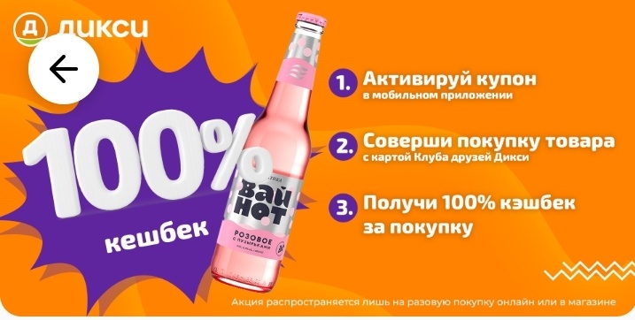 В Дикси появился новый купон. Нужно его активировать в приложении, действует до 30 сентября на 1 покупку.