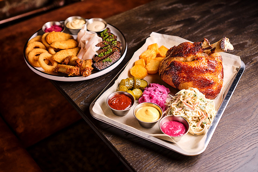 Один из самых объемных сетов (2 100 г) подготовили в гастропабе на пр. Машерова, 10. В его состав вошли большая тарелка пивных закусок: куриные крылья, наггетсы, луковые кольца, гренки из черного хлеба с салом и сырным соусом, хреном, а также большая свиная рулька с салатом коул слоу и жареным картофелем в подаче с маринованным луком, маринованными огурцами, сладкой горчицей, соусами сальса и гриль.