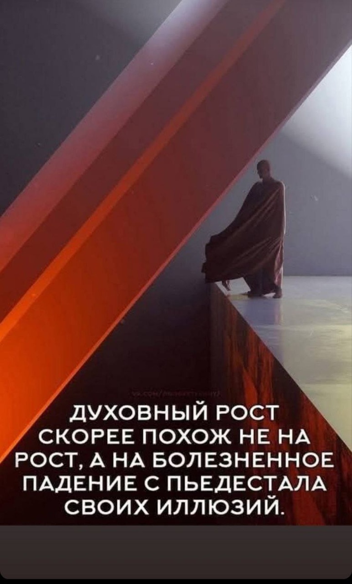 Отличная и очень глубокая мысль в том посте. Я с ней полностью согласен. Мне очень импонирует эта идея про духовный рост как болезненное падение спиди-гонщика. Это кажется мне не просто красивой метафорой, а самой что ни на есть настоящей истиной. Именно так, во всяком случае, выглядел мой собственный путь, если его, конечно, можно назвать и духовным, и ростом. Я вспоминаю момент одного из самых важных осознаний в моей жизни, который положил конец тяжёлому и продолжительному экзистенциальному кризису. И в тот самый миг меня осенило: я с ужасом и одновременно с облегчением понял, что все проблемы в моей жизни были... тщательно созданы мной самим. Это было горькое и унизительное прозрение. Не мир был несправедлив ко мне, а я сам годами выстраивал labyrinth из своих же страхов, оправданий и неправильных выборов. Было мучительно больно это признать, но именно в этом признании и была свобода. Потому что только после этого я смог сделать самый важный шаг — взять на себя ответственность.