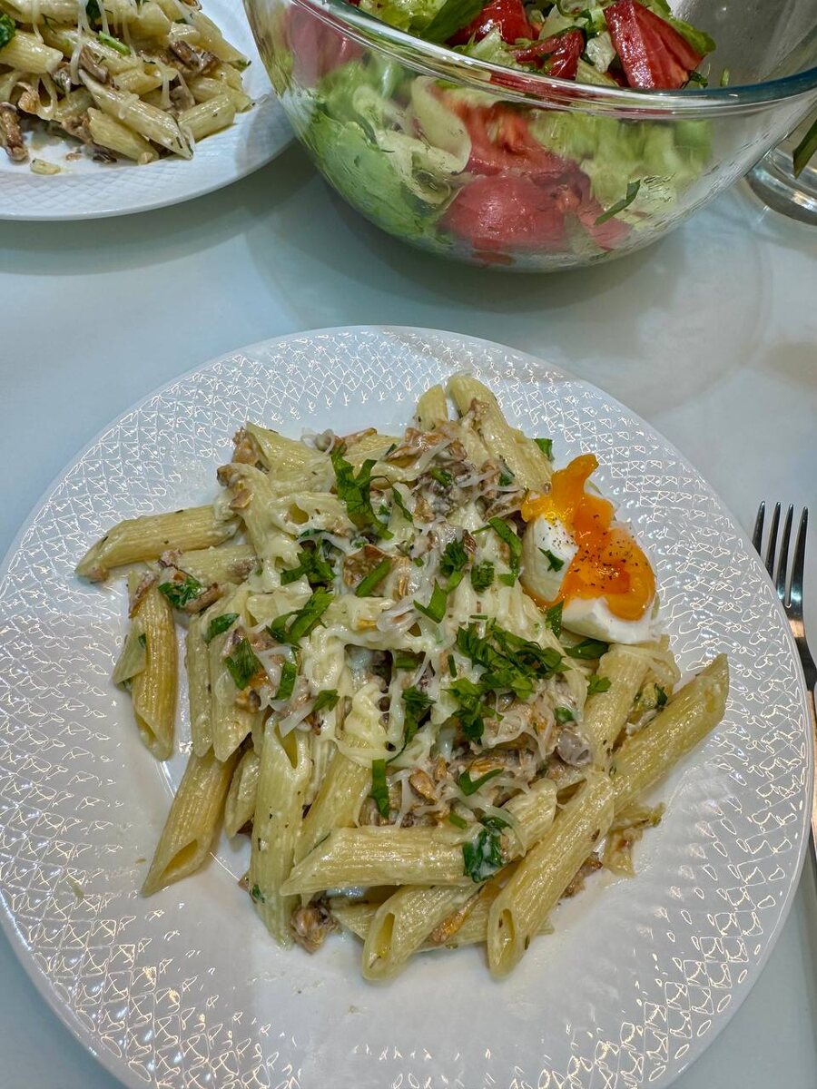 Пока у меня грузится новое видео, поделюсь с вами блюдом сегодняшнего ужина - паста с лисичками