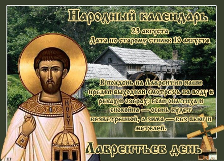 В субботу 23 августа 2025 года Православная церковь почитает память Лаврентия Римского– архидиакона римской христианской общины, казнённого во время гонений при императоре Валериане. Святой происходил из города Оска в Тарраконской Испании, был учеником архидиакона Сикста. Когда в 257 году Сикст стал Римским епископом, Лаврентий был рукоположен в диаконы. Ему поручили заботу о бедных и надзор за имуществом Церкви. ❇️ПРИМЕТЫ ✔️Если погода теплая и дождливая, рыбалка будет удачной. ✔️На воде нет волн – осень будет теплой, а зима – мягкой. ✔️Волны на воде – к холодной осени и суровой зиме. ✔️На воде мелкая рябь – август и сентябрь будут дождливыми и ветряными. ✔️Много желудей – следующий год будет урожайным. ✔️Птицы затихли – к дождю. ✔️Иней с утра – зима будет ранней и холодной. ✔️Листья липы снизу желтеть начали – к богатому урожаю озимых. ❌ЧТО НЕЛЬЗЯ ДЕЛАТЬ ✔️В Лаврентьев день 23 августа нельзя умывать простой водой лежачих больных, поскольку они могут никогда больше не встать с п