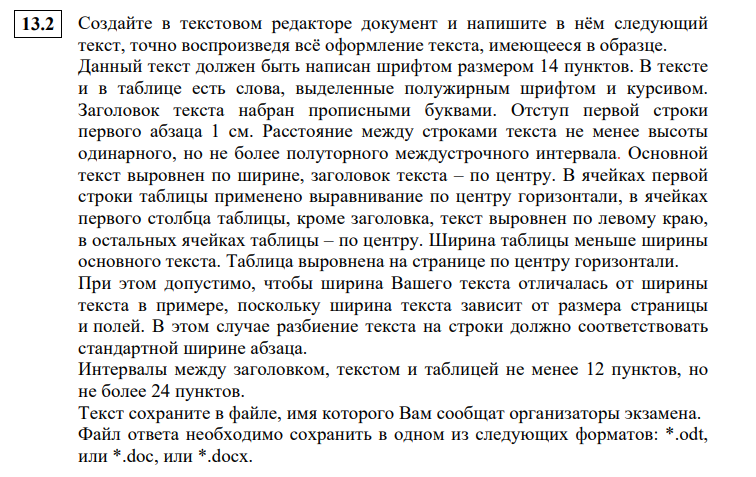 Решение задания № 13.2 текст + таблица (LibreOffice Writer)