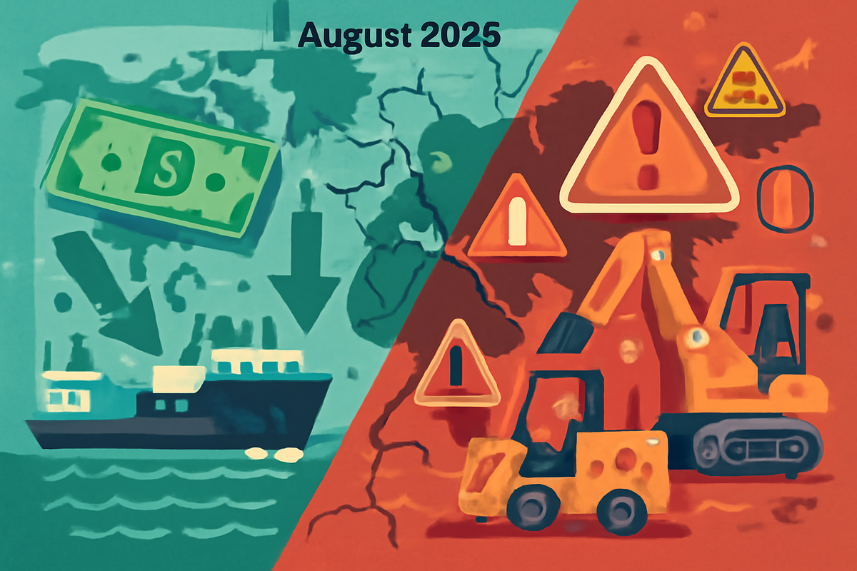 После весенне-летней волатильности морские ставки продолжают снижаться. Для закупщиков это редкое окно: можно фиксировать ставку на короткий период (2–4 недели) и закладывать экономию в бюджет проекта. Но «география риска» не сменилась: часть судов всё ещё обходит Красное море, а страховые премии на опасных коридорах выше докризисных. Вывод: экономия на фрахте есть, но календарь доставки по «тонким» маршрутам держим с буфером +2–4 недели. 2. Каналы мирового транзита: осторожный оптимизм