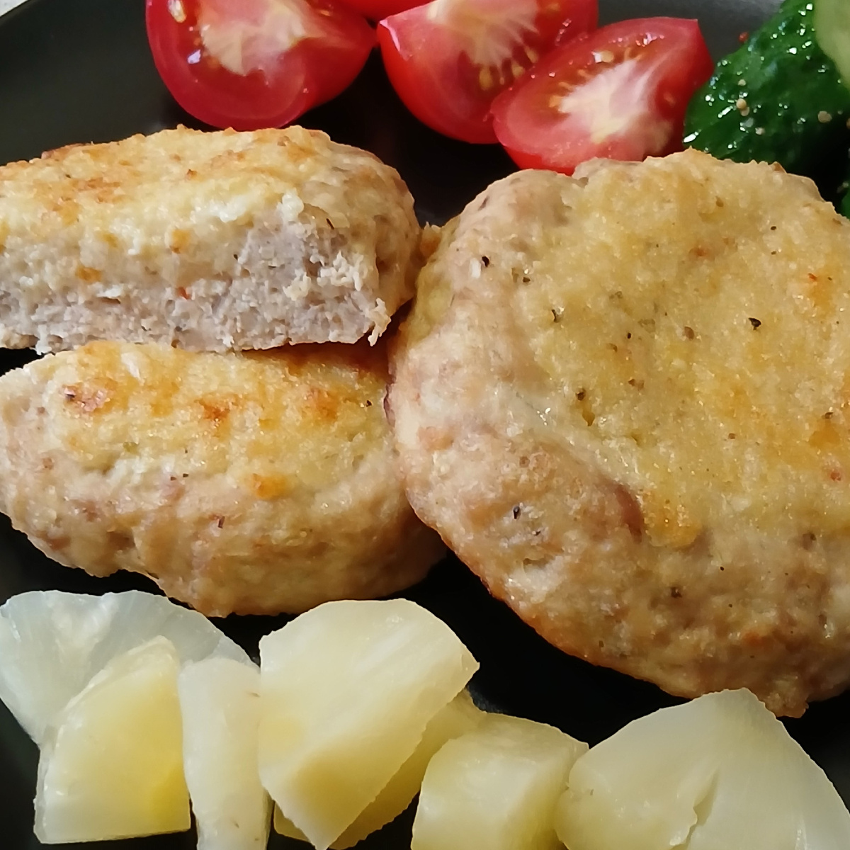 Сегодня хочу поделиться рецептом, который стал настоящим открытием — куриные ватрушки с ананасом и сыром. Это не просто котлеты, а изысканное блюдо с контрастом вкусов: нежный куриный фарш, сладковатая ананасовая начинка и пикантная сырная корочка. Идеально для ужина в кругу семьи или даже для праздничного стола! Готовится всё просто, а результат впечатляет. Для фарша: Куриный фарш — 500 г (лучше приготовить самим из филе грудки и бёдрышек) Лук репчатый — 1 шт. (пропустить вместе с куриным мясом или мелко нарезать) Яйцо — 1 шт. (добавлять по желанию, я не добавлял) Соль, перец, паприка — по вкусу Для начинки: Ананасы консервированные (кольца или кусочки) — 100 г Сыр твёрдый (например, «Чеддер») — 50 г Чеснок — 2 зубчика Сметана или майонез — 1-2 ст. л. Соль, чёрный перец — по вкусу 1. Подготовка начинки Ананасы (слить сок), чеснок, твёрдый сыр, сметану (или майонез), соль и перец, специи измельчить в блендере до однородности. Начинка должна быть густой, как крем. Если слишком жидко — д