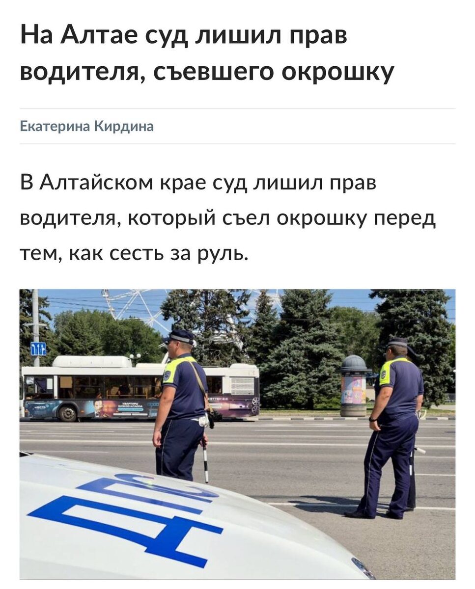 Полицейский остановил водителя, который перед этим съел окрошку на квасе и выпил безалкогольное пиво. Медосвидетельствование он пройти не отказался, но результат убил.