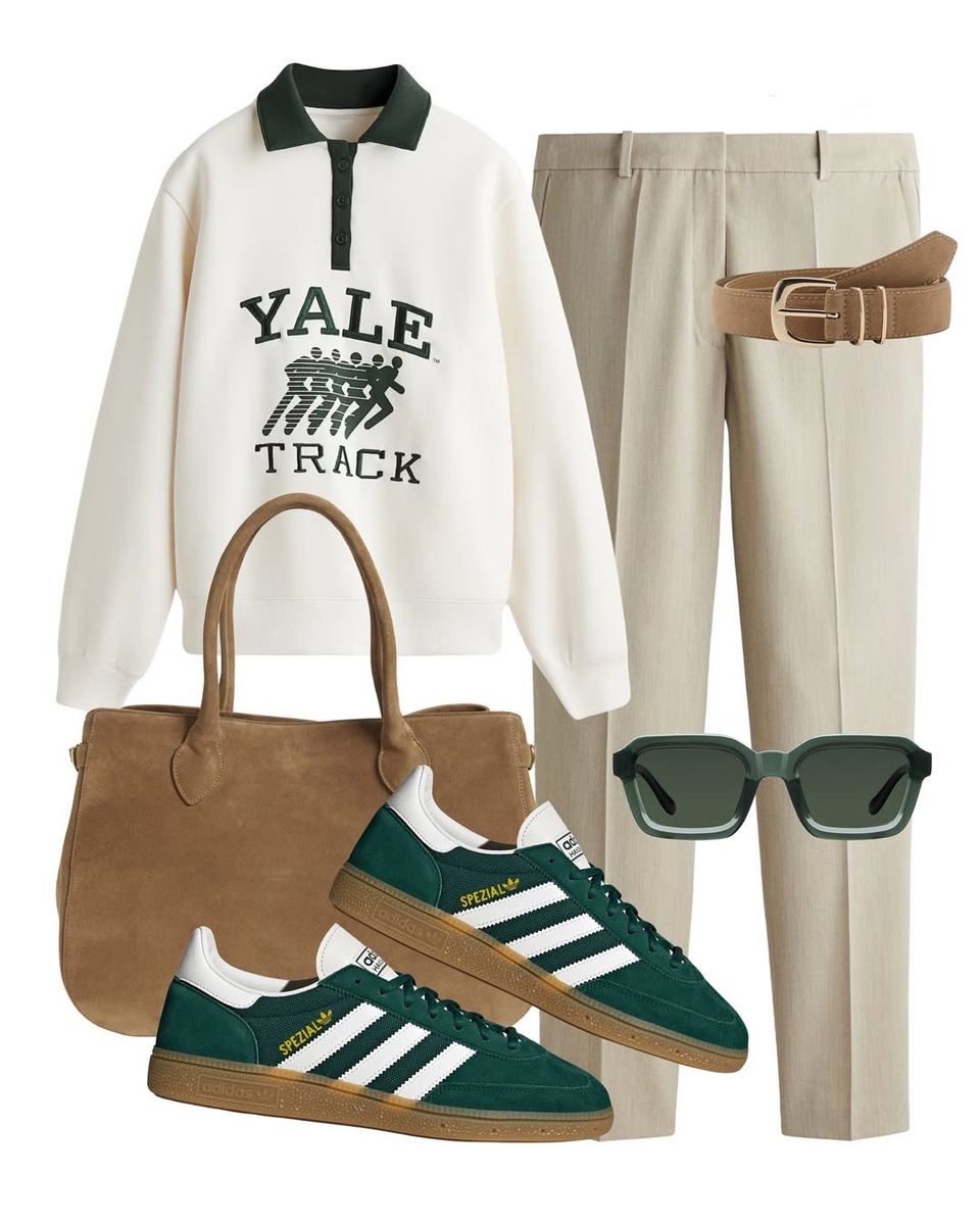 ОБРАЗ 1. «IVY SPORT»: кремовый свитшот + лесной зелёный