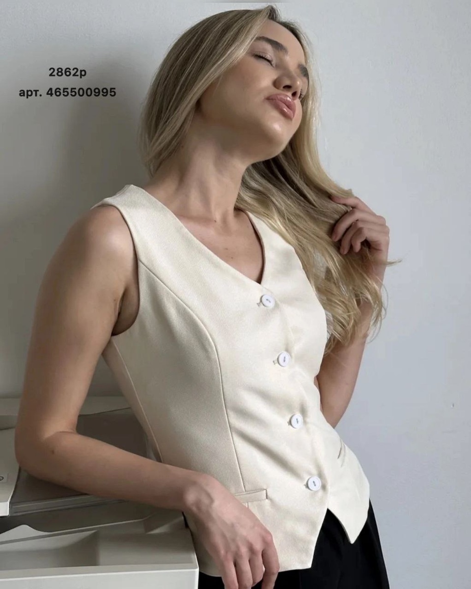 1) Молочная приталенная жилетка — арт. 465500995 (≈ 2862 ₽)