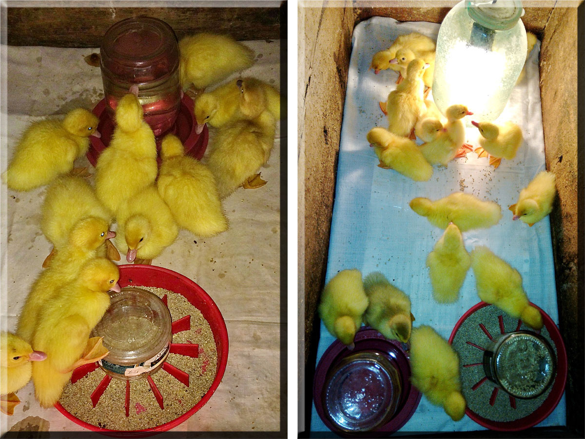 Ночью у утят горит свет, поскольку жара продолжается и основная кормёжка приходится на ночь, когда температура воздуха снижается до 22-24 градусов. На свет слетается различная мошкара и утята за ней охотятся, сами добывают себе животный белок.