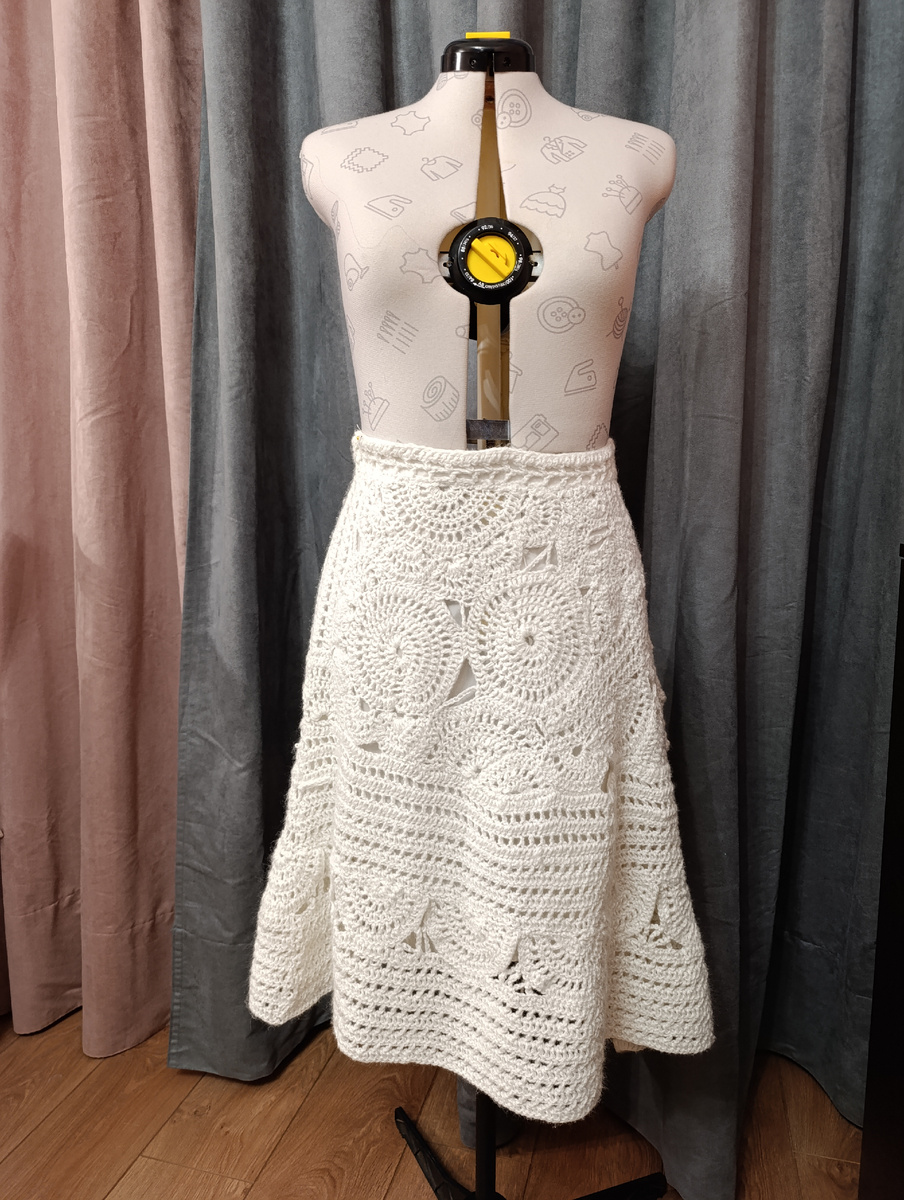 Ну что ж! Осень уже наступила, так что пора утепляться! И на холодное время года есть у меня замечательная белая юбка. Я ее про себя называю "Снежная королева" После успеха с вязаным пальто, мне захотелось повторить опыт. И в этот раз связать белую юбку на зиму. Вязала из акриловой пряжи с добавлением шерсти. Она удобна тем, что не не колется, хорошо держит форму, а также теплая. Т.к. на тот момент я не умела еще вязать цельные изделия крючком, то решила делать мотивами. В узор юбки вошло несколько круглых элементов, полукругов, а также прямоугольное полотно по всей длине юбки. Все это я сшила между собой в соответствии с той формой, которая была у меня в голове. Сделала подкладку, пришила замок и вуаля! В морозы самое то! И красиво, и тепло😁 и да, асимметрия была задумана! По времени я потратила в среднем 20 часов. #запетелькой #вязаниекрючком #вязание