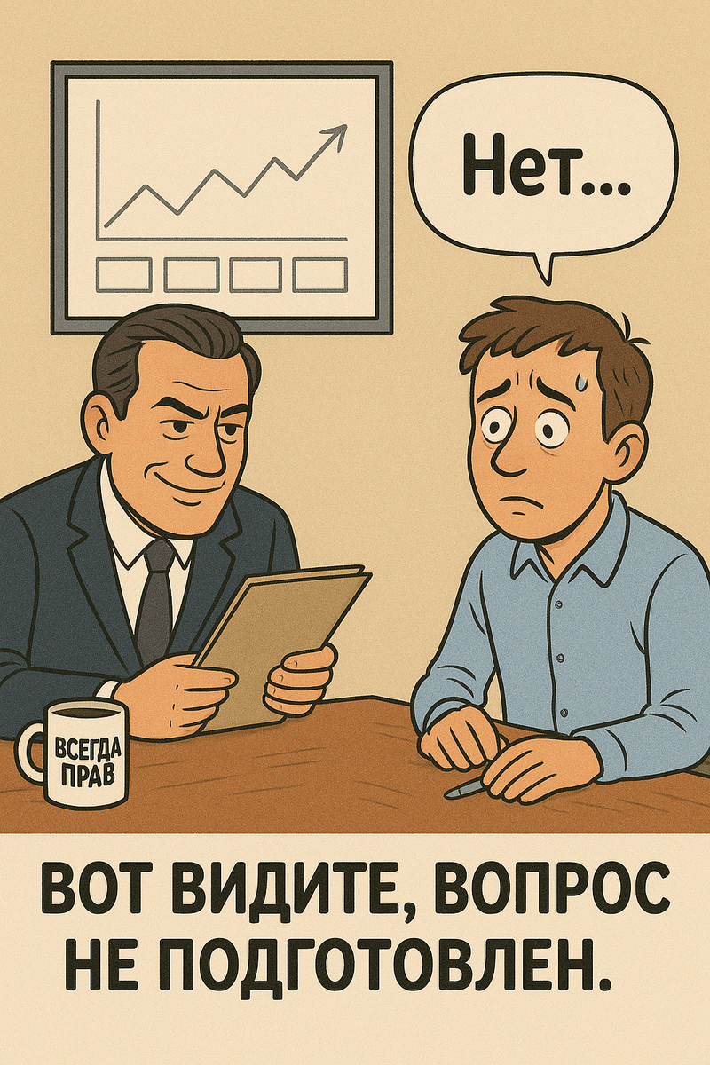 «Вот видите, вопрос не подготовлен». Прием сработает, если: ➡️ вопросов не будет больше трех, в противном случае будет слишком очевидно ваше предвзятое, негативное отношение к собеседнику, и диалог превратится в суровый допрос, ➡️ вопросы будут сложными, неразрешимыми, особенно последний