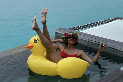 59-летняя Холли Берри поплавала в бассейне в красном боди