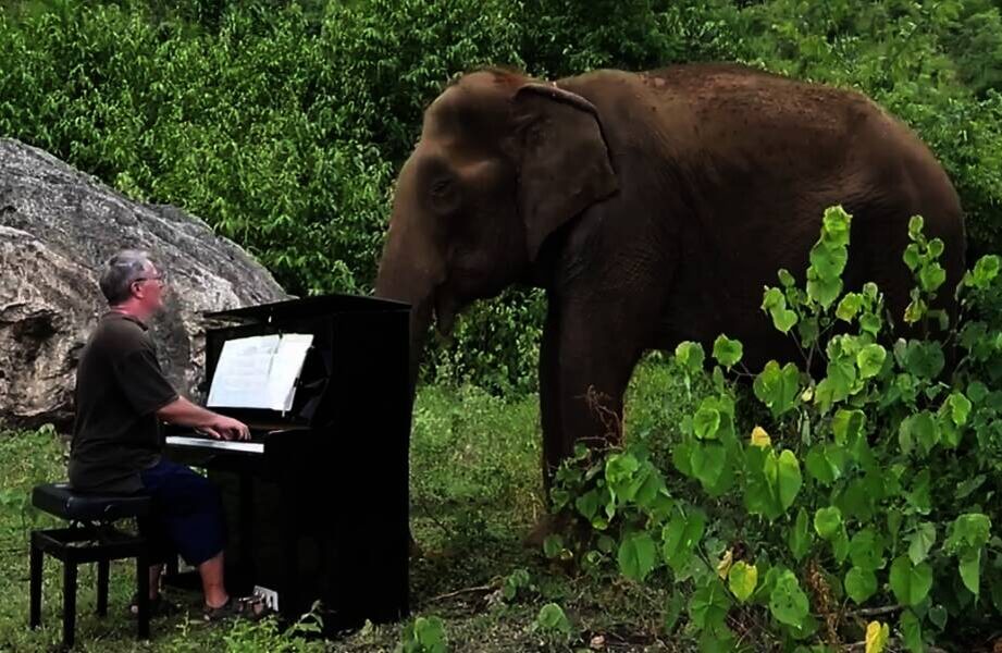 От концертных залов к джунглям: как классическая музыка лечит души слонов. Пол Бартон приехал в Таиланд преподавать музыку. Своего благодарного слушателя он обрел там, где не ожидал ― в заповеднике «Мир слонов». Сейчас Бартон регулярно устраивает концерты под открытым небом для слепых слонов: животные преданно слушают и находят в его музыке настоящее утешение. Трогательные видеозаписи этих выступлений набирают миллионы просмотров в соцсетях. Конечно, слоны не проливают слезы как люди, но они испытывают глубокие эмоции. На горе, стресс и радость они реагируют голосом и телом. Видно, как они наслаждаются музыкой Бартона, по ушам: слоны не шевелят ими и внимательно слушают. Одним из самых преданных поклонников творчества Бартона стал 61-летний Монгкол, бывший рабочий слон. Долгие годы животное использовали для перетаскивания деревьев в тайских лесах, отчего слон потерял глаз, бивень, а его тело деформировалось. Монгкол обрел новый дом в заповеднике на берегу реки: тут он проведет оставшие