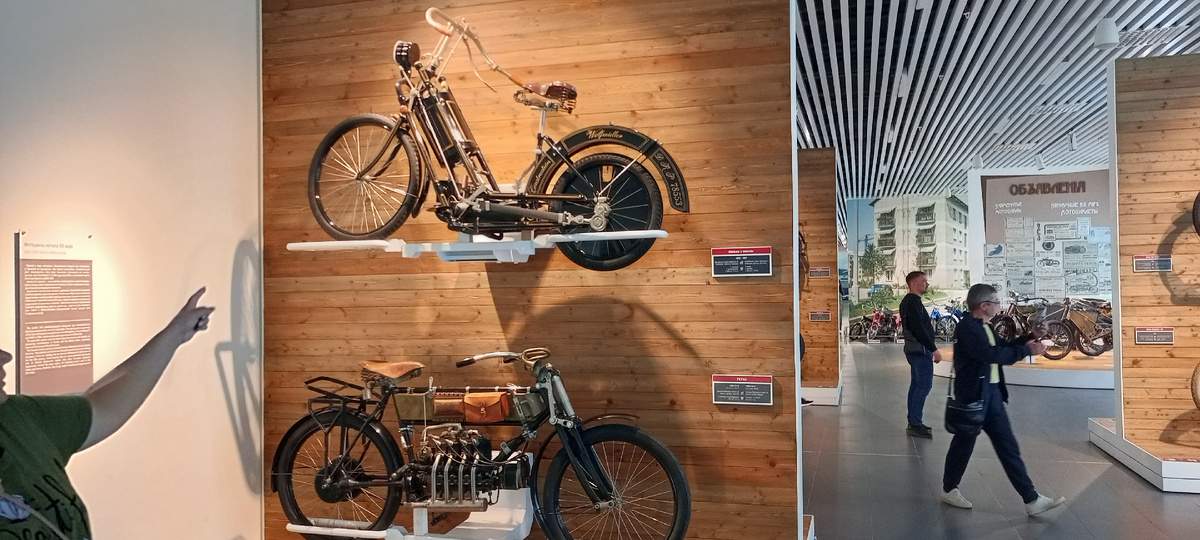 Велосипеды и мотоциклы. В музее так же представлены велосипеды и мотоциклы, начиная от начала века, заканчивая современными Спортивные мотоциклы СССР с коляской Отдельно выделена экспозиция, посвящённая мотоциклам Ява. Продолжение следует...