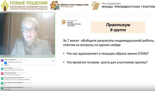 👋И снова мы делимся новостями об обучении психологов – будущих наставников проекта! На этой неделе прошло шестое занятие. ➡️В начале вебинара разобрали ответы на вопросы, которые появились при выполнении домашнего задания. Участники познакомились с алгоритмом пятишагового преобразования обиды в понимание и прожили его. Практика оказалась очень эффективной и произвела большое впечатление: 💬«Шикарное упражнение! Многое "подсвечивает" на что внимания не обращала, а это оказалось важно», - признается одна из участниц. 📊На этом занятии начали осваивать еще одну важную практику: осознание своего текущего образа жизни как наставника. В мини-группах обсудили: что вдохновляет в текущем образе жизни? А что является точками роста? 🤔В финальной части занятия был задан важный вопрос: чем образ жизни меня как наставника отличается от образа жизни меня как человека, личности? Ответ на него подчеркнул ключевые моменты подхода к наставничеству в нашем проекте, помог осознать диалектику взаимодей