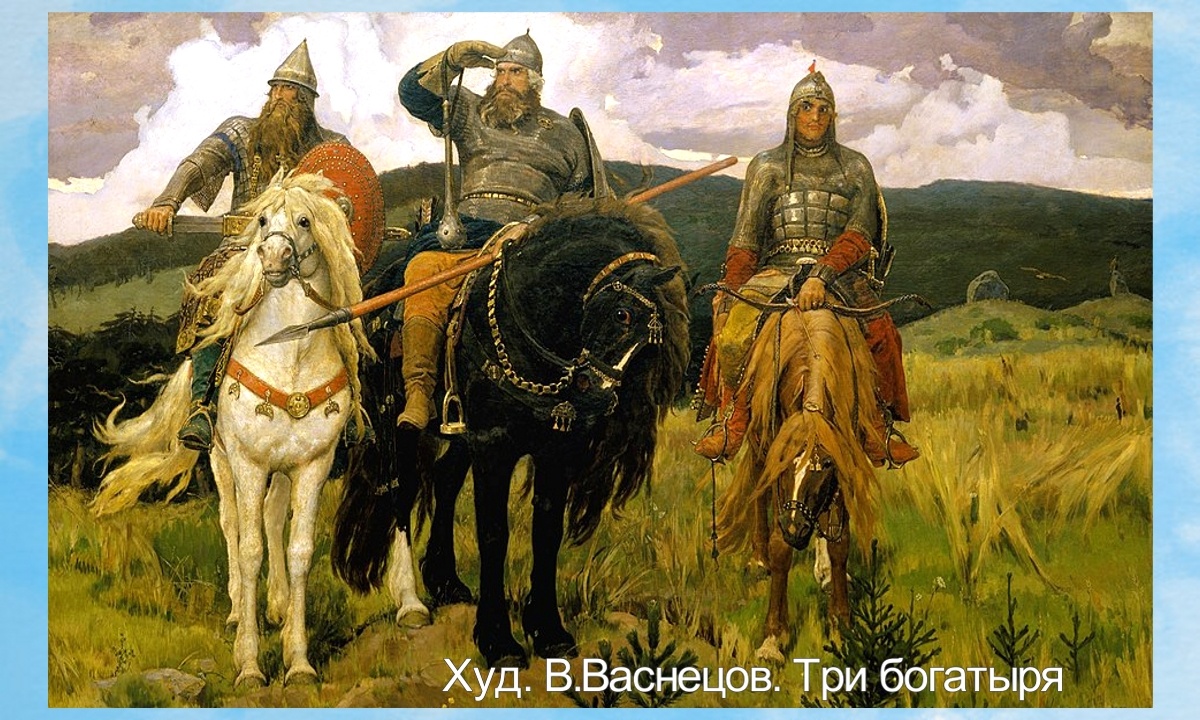 - Кстати, картина "Три богатыря" одна из самых известных картин Васнецова, а ведь он, сделав набросок этой картины, хотел этот сюжет подарить другому художнику! Представляете себе?