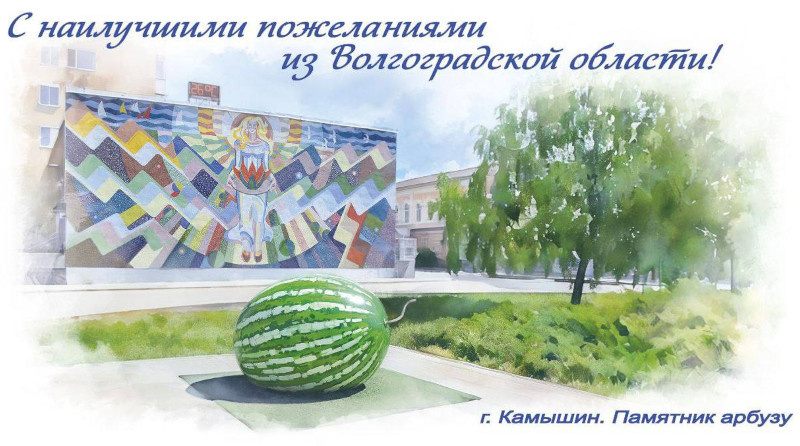 На эксклюзивной открытке изображен памятник арбузу на фоне панно «Девушка с арбузом в виде цветка лотоса». Автор фотографии — камышанка Юлия Карпенко. Как сообщили организаторы Арбузного фестиваля, открытка внесена в официальный каталог «Русмарка» (2025-138/5). Сувенирный экземпляр после гашения передадут в музей.