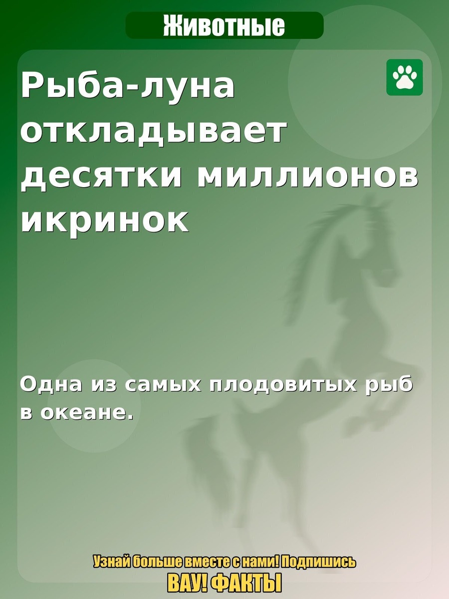Рыба‑луна откладывает десятки миллионов икринок. Одна из самых плодовитых рыб в океане. Интересный факт по теме «Животные»: Рыба‑луна откладывает десятки миллионов икринок. Почему так: Одна из самых плодовитых рыб в океане.. Поделитесь в комментариях, знали ли вы об этом и стоит ли делать продолжение по теме. #животные #факты #природа