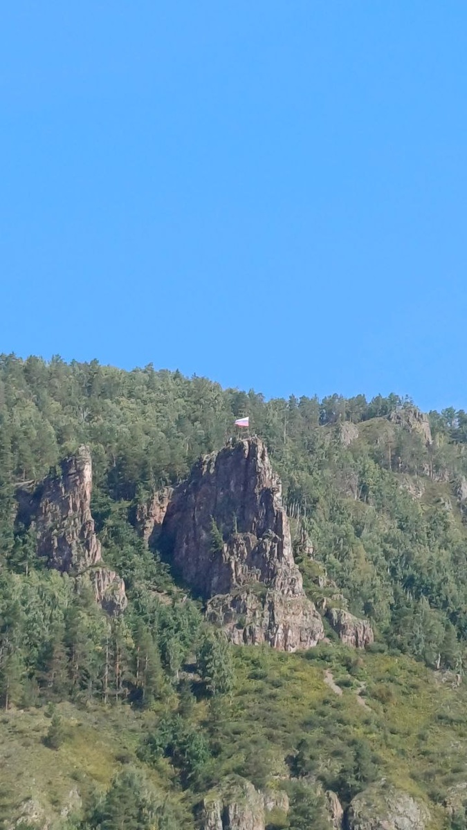 Прямо сейчас произошло водружение российского флага на скале на левом берегу Енисея