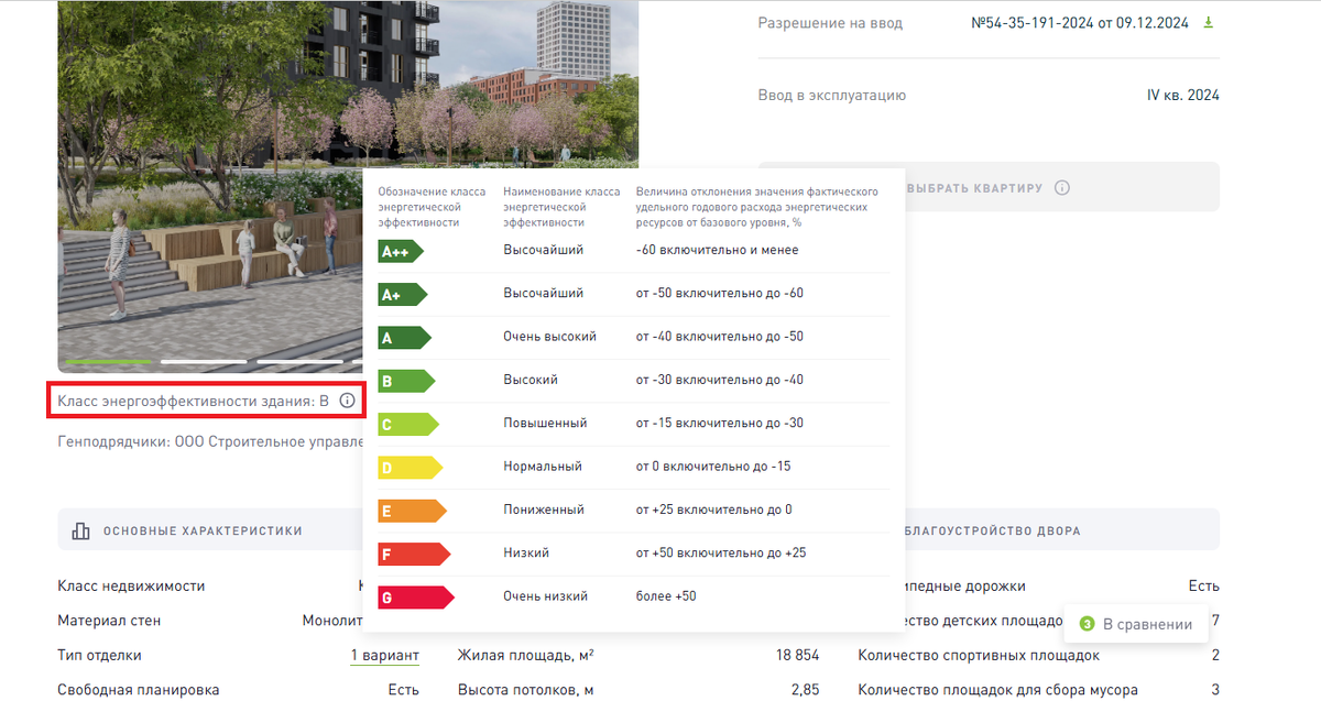 Класс энергоэффективности дома показывает, насколько «бережно» он расходует энергию и ресурсы. Грубо говоря, это рейтинг дома по теплу, воде и свету: чем выше класс (ближе к A++), тем экономнее здание. При расчёте учитываются расходы на отопление, вентиляцию, горячее водоснабжение и электричество для общих нужд. Законодательно введено девять классов: от наивысшего A++ до низшего G. Новый дом получает класс после сдачи в эксплуатацию на основе проектной декларации. Кроме того, жильё с высоким энергоклассом обычно более «ликвидны» на рынке. Комфортное и недорогое в эксплуатации жильё быстрее находят покупателей, и такие квартиры могут стоить дороже. Дом с А++ классом - это как энергоэффективный автомобиль: дороже в покупке, но бюджетнее в эксплуатации. Вся информация о новом доме, включая класс энергоэффективности, открыто публикуется на портале ЕИСЖС (наш.дом.рф). В карточке каждого ЖК в разделе «Проектная декларация» есть строка «Класс энергетической эффективности». Достаточно найти на