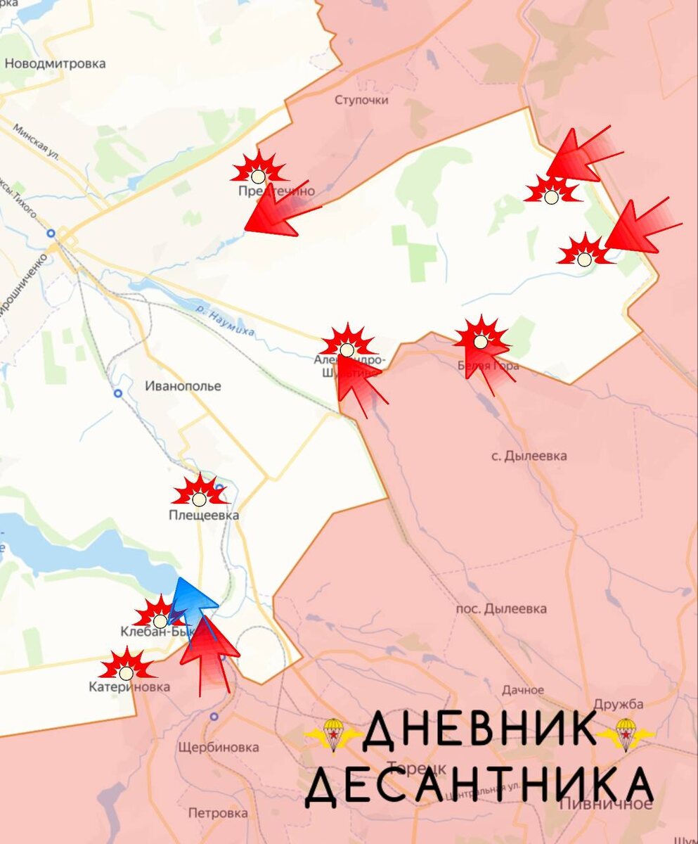 🪂 Константиновское направление. Наши войска продолжают биться за контроль территории у населенного пункта. Если с западной стороны наши войска пробиваются достаточно динамично, то с востока идут длительные бои, которые осложнены рельефом, оборонительными сооружениями, которые противник за длительное время хорошо подготовил. На участке у Клебан-Бык: Бойцы ВС РФ продвинулись в Катериновке, а также на склонах восточнее села. От самой Катериновки ВСУ оттянули остатки сил в Клебан-Бык, где продолжают удерживать рубежи и контратаковать из населенного пункта малыми группами. Касательно заявлений МО РФ по Александро-Шультино, бойцы с мест и военблогеры утверждают, что село не за нами, на данный момент контроль идёт по центру села. Также идут штурмовые действия в районе Белой Горы и наступаем с восточной стороны от канала. ▫️ Дневник Десантника