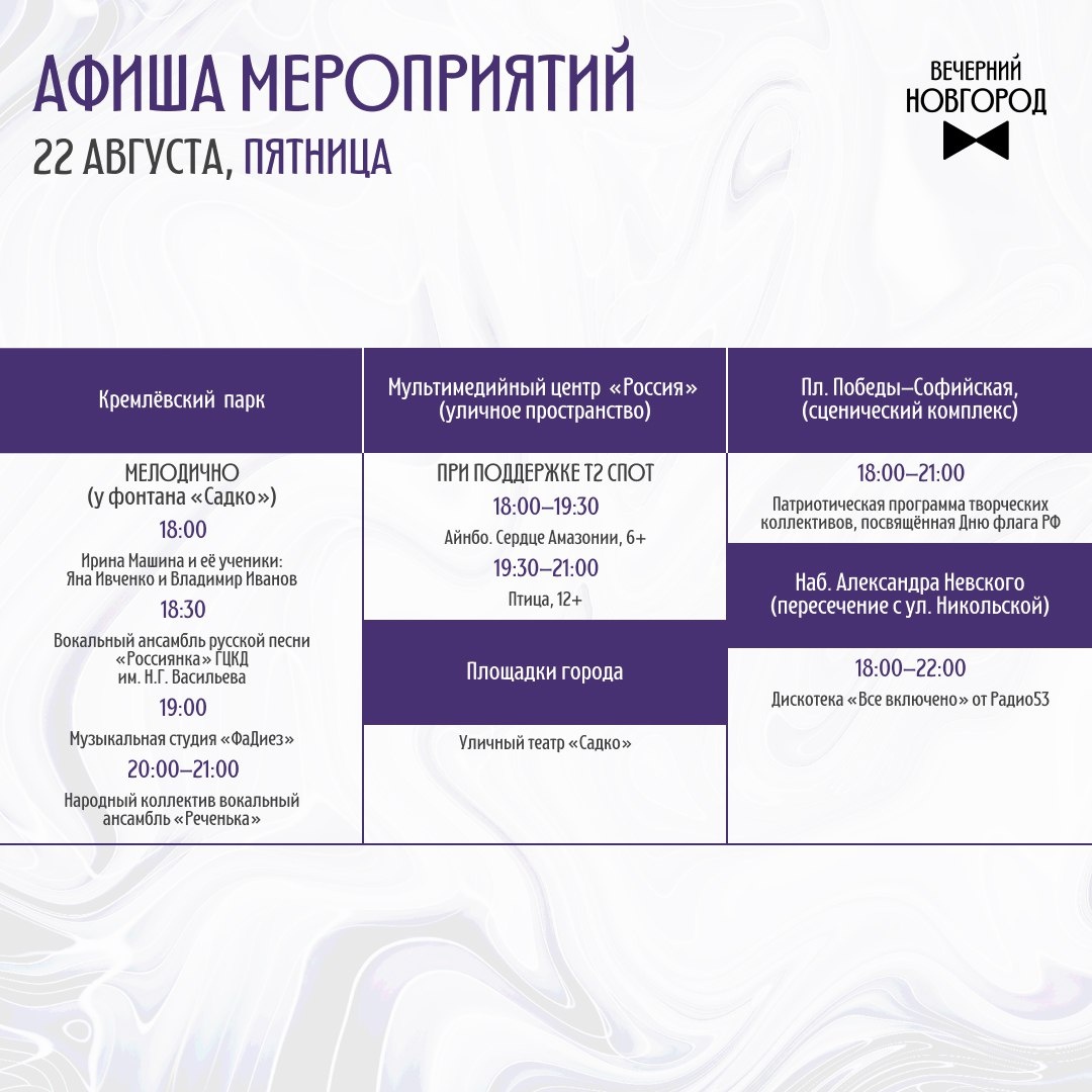 🥳 А вот и афиша фестиваля «Новгородское лето» на ближайшие выходные