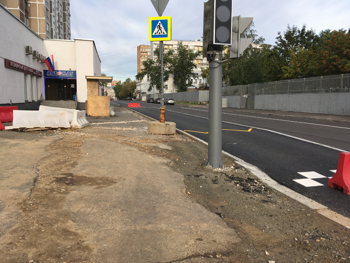 Полностью готовый участок улицы Гиляровского. Для движения автомобилей осталось только три полосы.