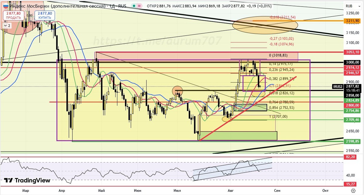 Но, если сегодня и за выходные не появится позитивных новостей, то на следующей неделе коррекция продолжится. Предполагаемая цель 2825 пунктов, после достижения которой новостной фон сменится на позитивный.
