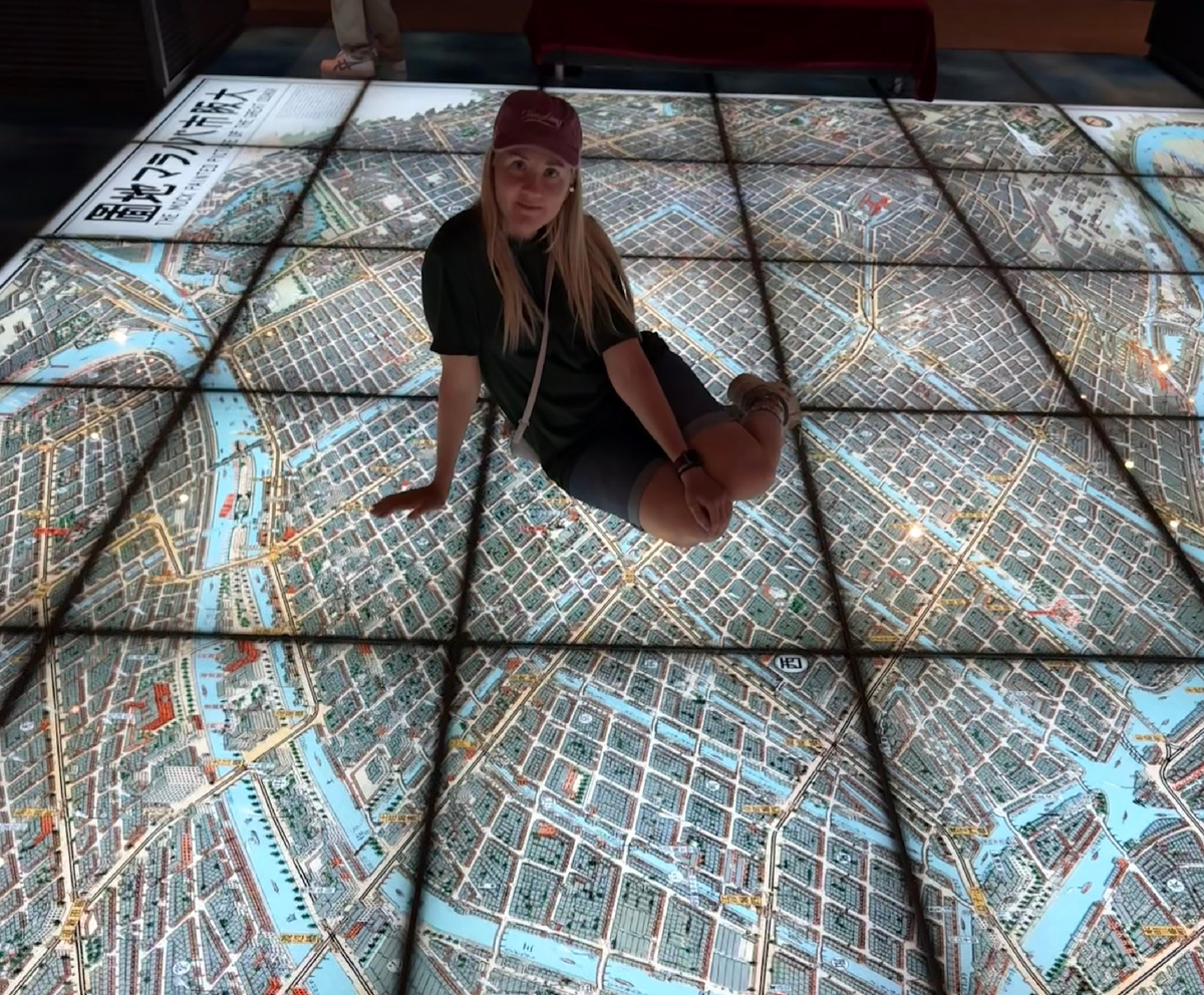 Сначала смотришь на город сверху: под стеклом открывается панорама с макетами улиц XVII–XIX веков. Деревянные дома, торговые лавки, крытые театры и даже пожарная башня — всё это выглядит невероятно детально. Атмосферу усиливает свет: днём залы залиты ярким сиянием, а вечером включается имитация ночного города.