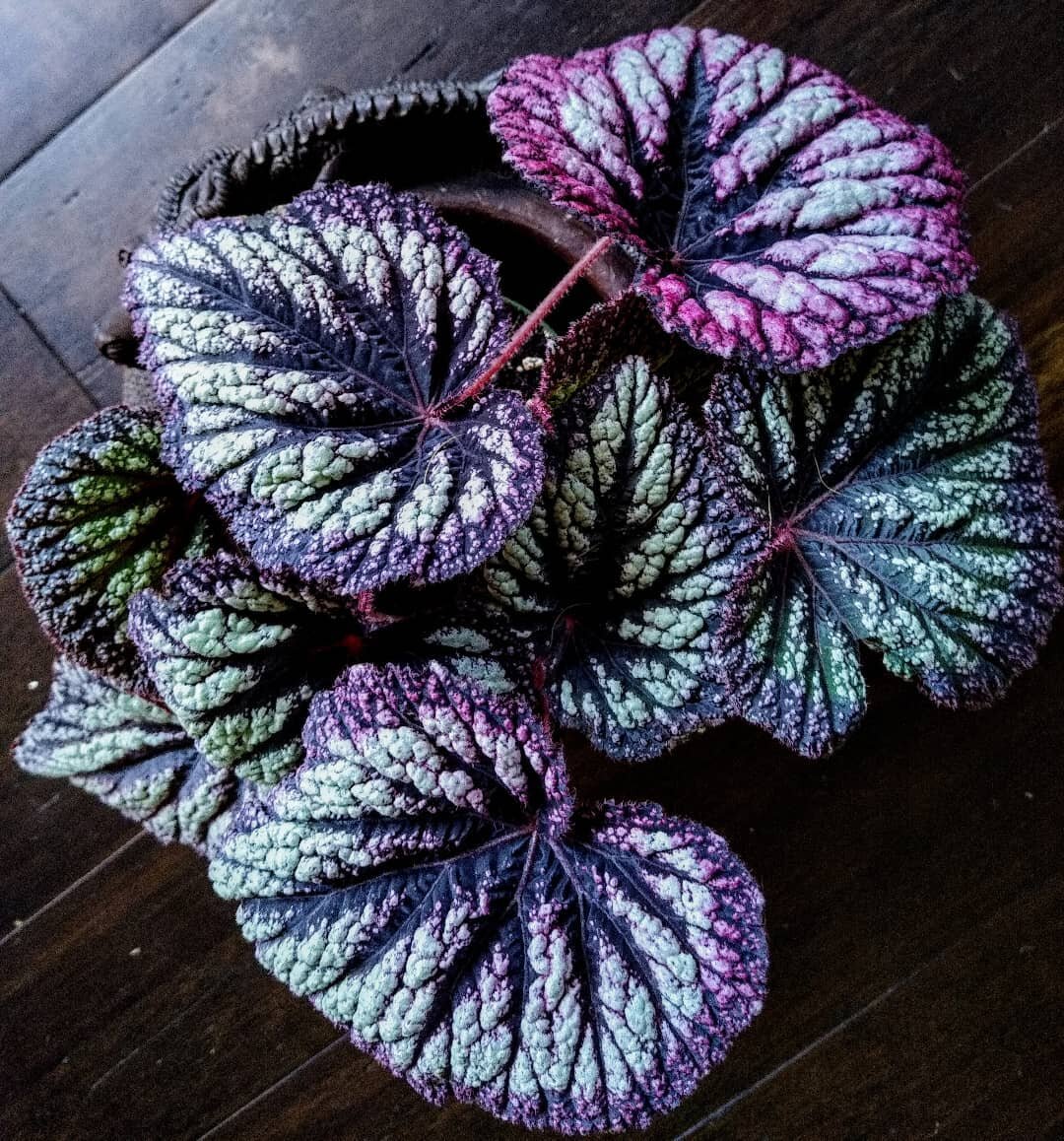 🌿 Главная ценность бегонии рекс — это её листья! Они бывают самых разных оттенков: от насыщенного изумрудного и тёмно-бордового до металлического серебра. Существует множество сортов практически под любой вкус. Любит непрямой свет, регулярный полив, тепло. Для посадки используйте неглубокие горшки и хорошо дренированные субстраты.