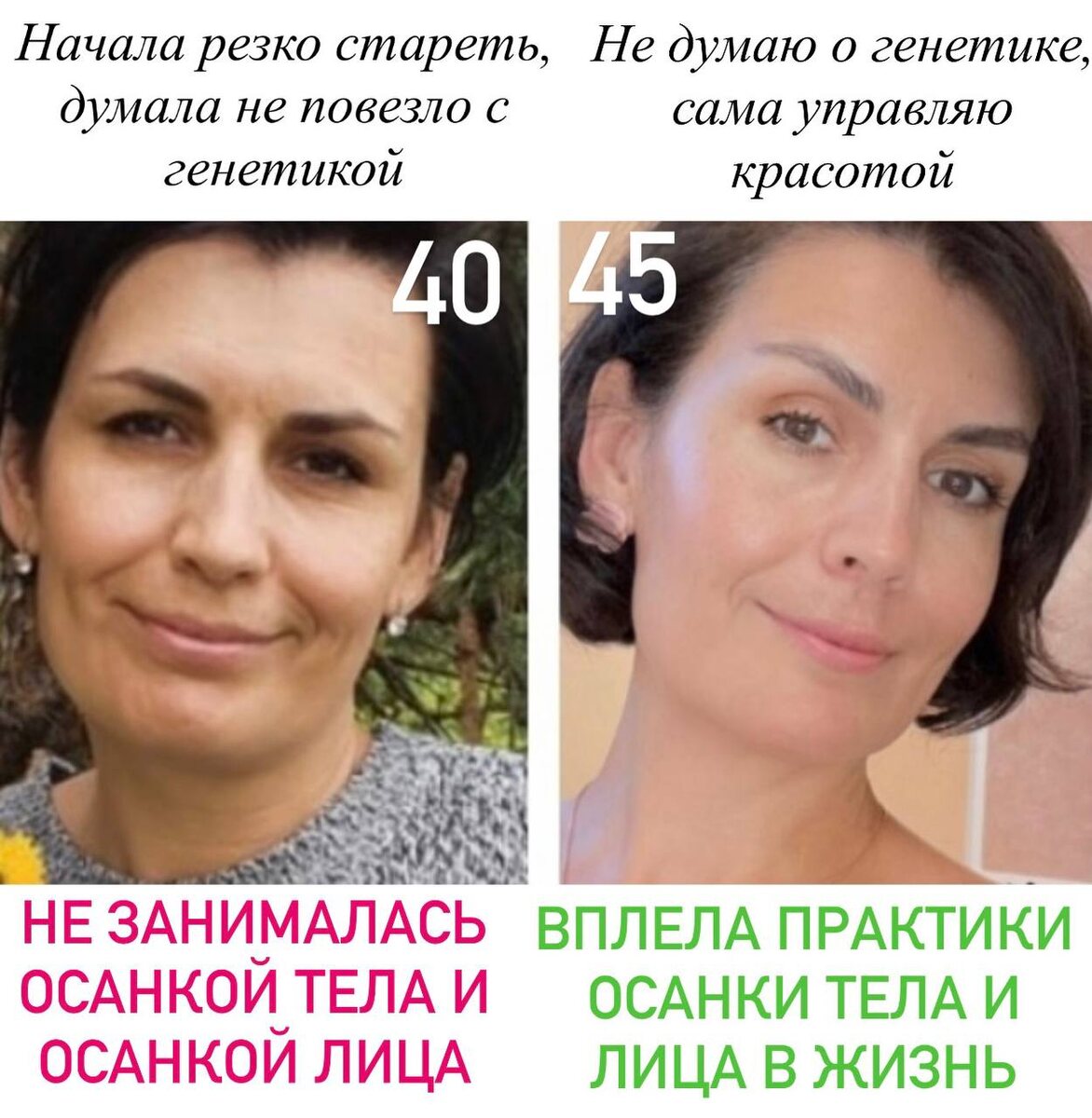 Вот мой пример. Возрастные изменения начали ярко проявляться, потому что нарушены осанка тела и лица. Занялась со настройкой - тело и лицо откликнулись, стала выглядеть и чувствовать себя гораздо лучше. Что было бы без этого, как думаете? Взять состояние в 40 и представить, что на протяжении этих пяти лет я жила так же, ничего не меняя. Как в этом случае себя чувствовала в 45? Ответ очевиден, стало бы хуже. Так устроено в природе, не меняешься - деградируешь. Каждый день - это выбор того, как я буду жить через год-два и так далее. Если тема осанки лица вам интересна, ставьте плюс в комментариях, буду подробнее рассказывать в чем именно заключаются практики осанки лица, как вы можете уже сегодня ее улучшить.