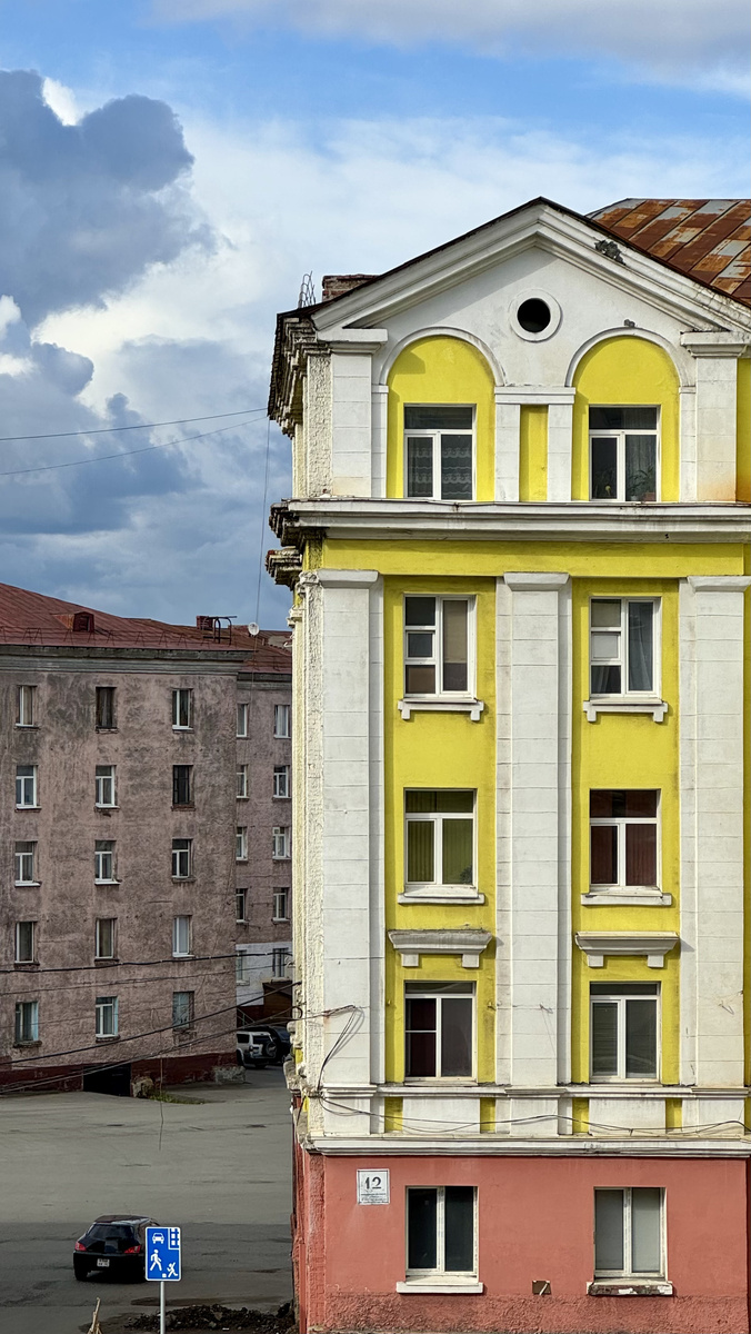 Контраст городской среды с горами в прострелах между дворами, контраст отреставрированных фасадов и нетронутых дворов, сталинская архитектура, дома на сваях, незаходящее солнце, цветное от выбросов небо, ветер, пустые улицы днём, уютные и вкусные кафе - все это Норильск. Второй город Красноярского края, производящий 20% мирового никеля, 10% палладия, 55% российской меди - он один генерирует 30% экономики огромного региона