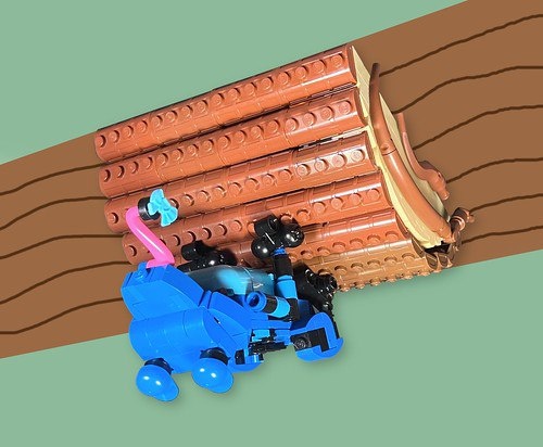 Миниатюрный синий робот из LEGO Technic! 🧱🤖 Этот очаровательный механический помощник создан с использованием уникальной техники сборки LEGO Technic — детали просто идеально соединяются, позволяя легко формировать текстуры и детали. Робот даже может тащить огромное бревно — отличный элемент для средневековой сцены или сказочного лесного приключения. Вдохновение — от @Brickbound. Выглядит потрясающе! Источник: Flickr Lego group