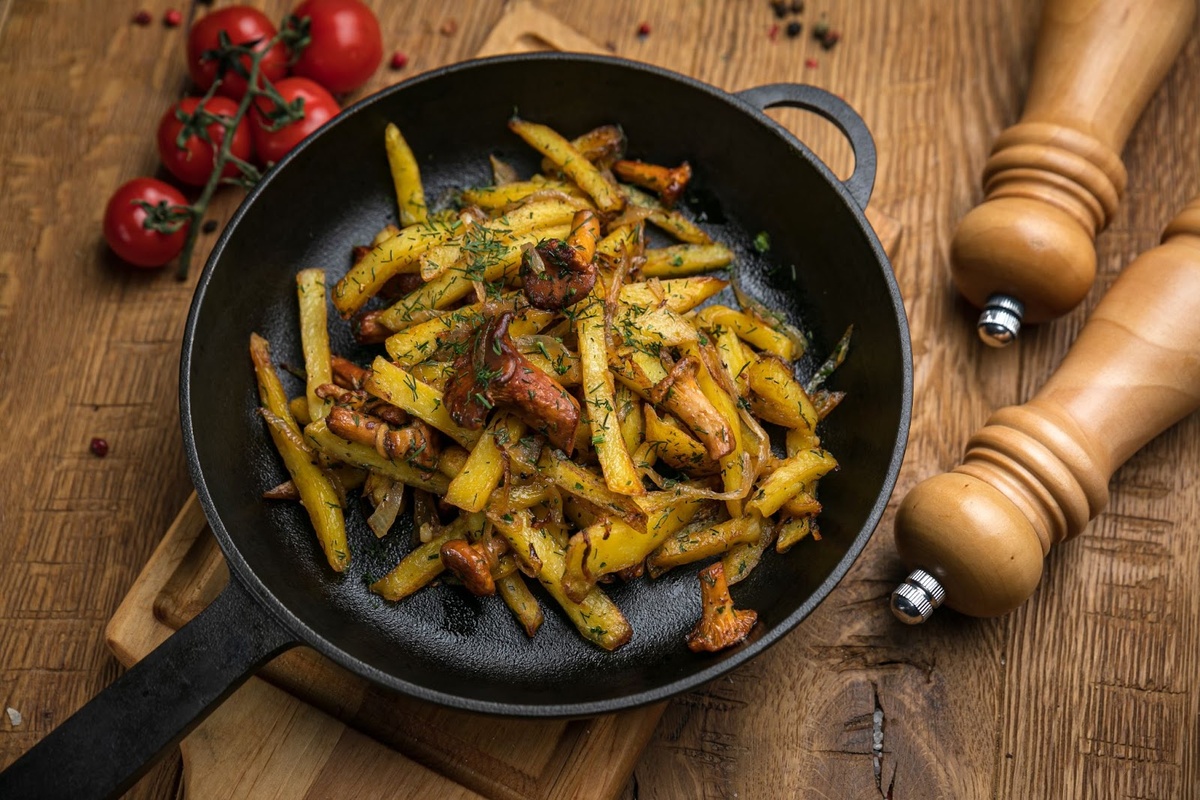 Это блюдо сочетает в себе питательность картофеля и насыщенный вкус грибов. Шампиньоны добавляют нежный аромат и белок, а при правильной обжарке создается аппетитная золотистая корочка. Жареная картошка с грибами — превосходный вариант для ужина, который можно подать как самостоятельное блюдо или гарнир.