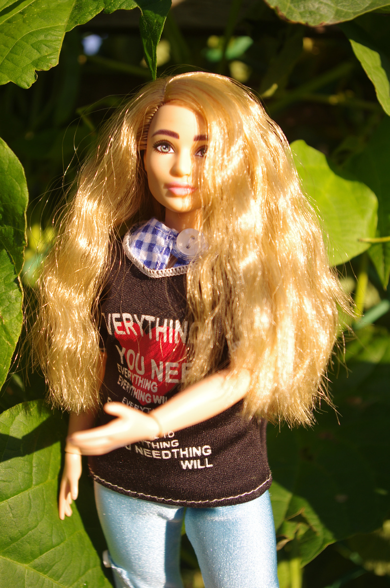 Здравствуйте! Сегодня хочу показать, претендентку на роль художницы. Пока у меня не было Мии, улыбашки я думала эту куколку сделать художником. Фешенка №159 выпускалась в платье-футболке с расцветкой тай-дайна, на станичном теле тип тела petite. дата выпуска 17.10.2020г. Моя куколка на пышном теле Софии.Одежда куколке идет разнообразная, в огород мы с ней вышли в обычной спортивной. Артикуляция у тела Софии ограниченная. Думаю сменить тело на более подвижное. Интересно её увидеть на стандартном шарнирном теле. Давно уже она у меня на пышном, так купила. Сначала нравилось, теперь надоел ее малоподвижный образ. Увидела в ней более юную леди. Будем, значит, худеть и менять гардероб. Волосы у куколки чудесные! Густые и очень мягонькие, цвет русый с золотистым пшеничным оттенком. Рисовка красивая, глазки живо смотрятся. Взгляд с полуулыбкой. Молд у нее June? Скинтон Yello wish. Первое время разнотон я не замечала. Куколка в целом, очень радует, но головушка светлее тела, теперь ста