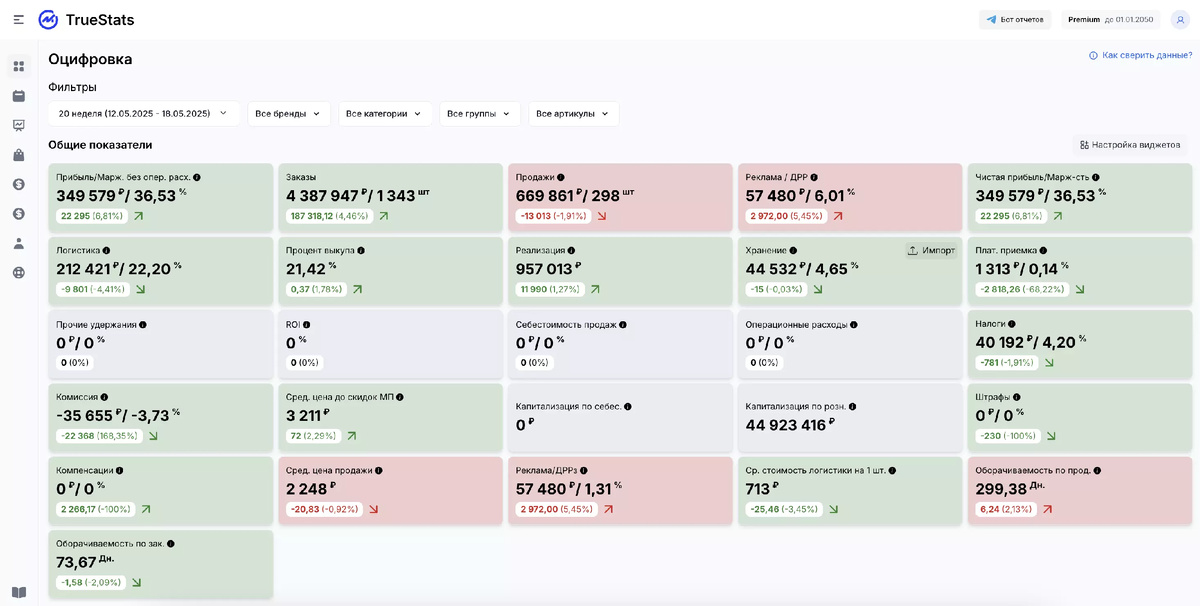 Оцифровка — это не отдельный отчёт, а постоянный поток данных: сервис автоматически собирает статистику продаж, учитывает комиссии, налоги, логистику, возвраты и сводит всё в управленческий P&L.