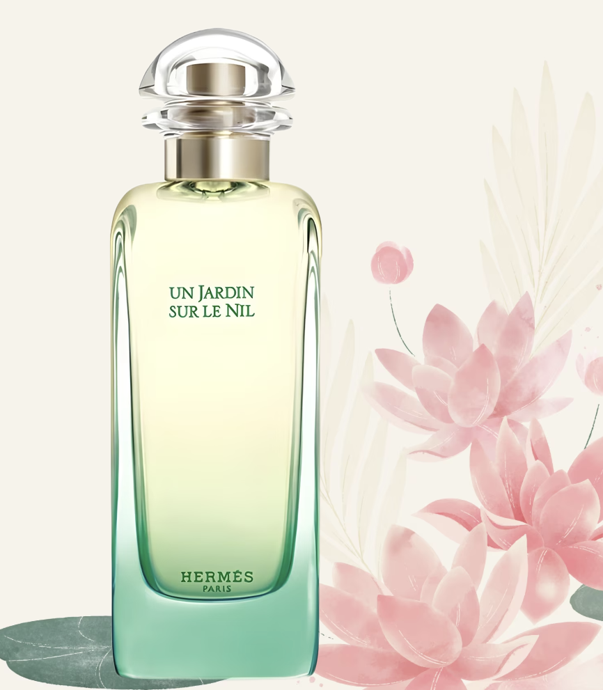 "С ним чувствуешь себя особенной, ухоженной и свежей даже в самую сильную жару," - вот так описывают "Сады Нила" пользователи популярного парфюмерного ресурса. Это правда. Un Jardin Sur Le Nil родились в воображении парфюмера Жан Клода Эллены, когда он путешествовал по жаркому Египту. Перед ним уже стояла задача сотворить аромат на тему знаменитой реки Нил - главного сокровища Египта что в древности при фараонах, что сейчас. Сначала Эллена и глава парфюмерного подразделения Hermes отправились в роскошный ботанический сад Kitchener, расположенный на острове рядом с древним городом Асуан. Совершенно роскошнейшее место - этот сад! Но Эллена не нашёл там вдохновения для себя. Воздух пустыни оказался слишком сухим и... ну, пустынным, что ли. Не впечатляющим. Цветы в саду пахли как тысячи других цветов. Не цепляло. Затем компания отправилась на рынок. Их окружили тяжёлые ароматы специй. Жан-Клод Эллена понюхал сушёные корни лотоса, - если вымочить их в воде, то их аромат похож на гиацинт и п
