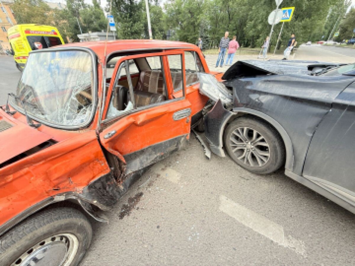 В Липецке Mitsubishi превратила оранжевую "копейку" всмятку: есть пострадавшие