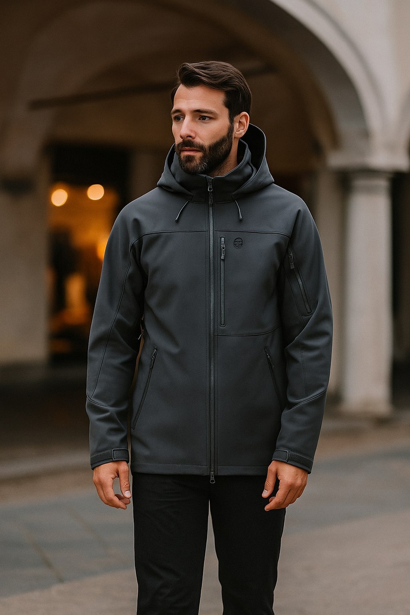 Забудьте про «дутики» а-ля космонавт и кожанки из нулевых. Серая куртка из ткани Softshell с флисовой подкладкой — это золотая середина между спортом и стилем. Softshell — это не просто модное слово, это технология! Ткань растягивается, дышит, защищает от ветра и при этом выглядит презентабельно.