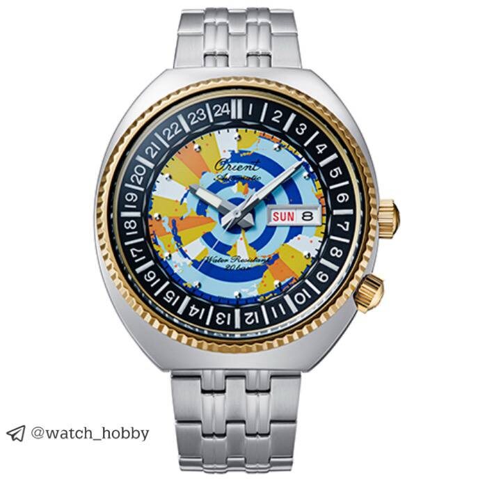 Orient Revival World Map 75th Anniversary Limited Edition: лимитированный выпуск в честь 75-летия бренда. Стиль модели с картой на циферблате - это одна из тех моделей Orient, которая действительно передает историю и эпоху бренда. Что с характеристиками: - Корпус из стали - Браслет из стали - Диаметр корпуса: 43.5 мм - От ушка до ушка: 46 мм - Высота корпуса: 13.9 мм - Сатиновая и зеркальная полировка - Минеральное стекло - Водозащита 200 метров - Дата - Автоматический калибр Orient F6922 Любителям ярких и футуристических историй посвящается. Яркость новинки привлекла мое внимание. Возможно, даже слишком ярко 🟡 Здесь все про ретро-стиль, логотип - он написан каллиграфическим шрифтом, таким, какой он был в 1950-х. Многоцветный циферблат - точное воспроизведение оригинальной модели 1969 года. Головки и рифленый рант покрыты золотым покрытием, это сделано в честь 75-летия. На задней крышке выгравирована надпись «Orient Since 1950 75th Anniversary», а также индивидуальный порядковый