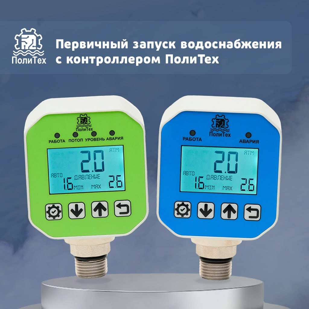 Первичный запуск водоснабжения дома с контроллером ПолиТех. Для первичного заполнения системы рекомендуется временно установить нижнее давление на уровне 0,05 МПа (0,5 атм). После завершения заполнения необходимо настроить порог нижнего давления в соответствии с характеристиками вашего насосного оборудования. Для функционирования системы водоснабжения минимальное давление для контроллера ПолиТех должно быть установлено на 0,1 атм выше давления в гидроаккумуляторе или превышать это значение. Обычно в простых гидроаккумуляторах стандартное давление составляет 2 атмосферы. Эта информация, как правило, указывается в паспорте устройства или на самом гидробаке. Рекомендуется устанавливать минимальное давление на уровне 2,1 атм или выше. ⚙️Диапазон возможных значений для настройки давления контроллера ПолиТех варьируется от 0 до 10 атм или от 0 до 20 атм в зависимости от модели и с шагом 0,1 атм.