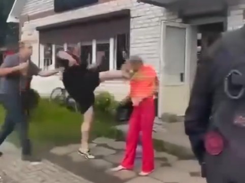 Мужик снес женщину у местного бара и чуть не вырубил её ударом ноги опытного кикбоксера