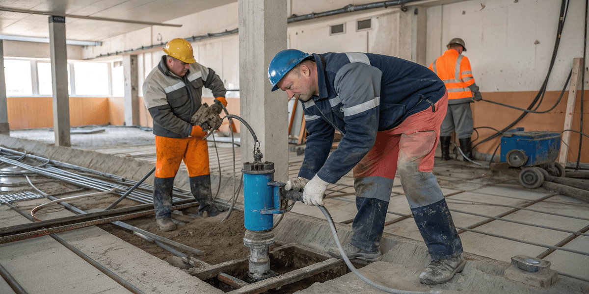 Это инъектирование в грунт специальных растворов через манжетные колонны для предотвращения осадок фундаментов сооружений. Простыми словами — это контролируемая закачка специального состава непосредственно под фундамент, который буквально поднимает просевшую конструкцию.