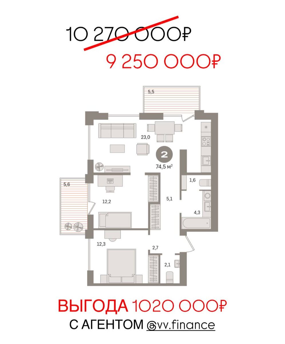 ⚡️Выгода 1020 000₽: Квартира с кухней-гостиной и двумя спальнями в жилом районе Пшеница 10 270 000₽ на сайте застройщика 9 250 000₽ при покупке с нами Трехкомнатная студия 74,5 м2 со сроком сдачи во 2 квартале 26г. 🔴Предчистовая отделка, балкон, второй санузел, вид во двор, разнесенные спальни. Пишите в личные сообщения канала, чтобы связаться со специалистом и узнать подробности!