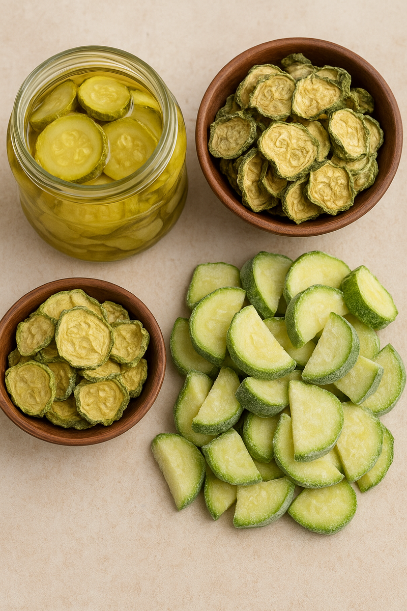 в) Бланшированные кабачки (сохранят цвет и текстуру лучше):