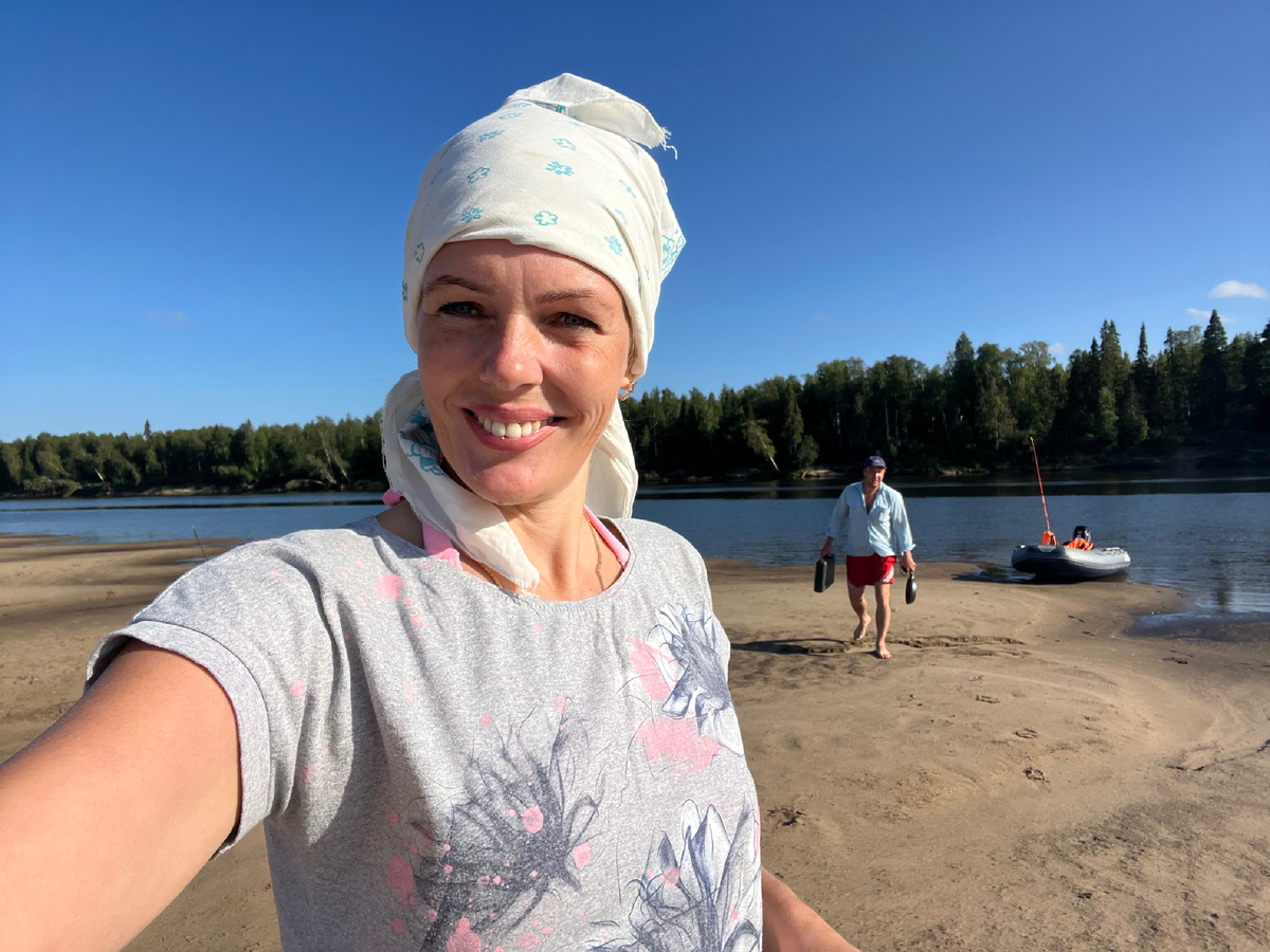 …Иван, мой родной брат, организовал нам путешествие на необитаемый остров. Остров огромный, расположен на реке Вычегда. Какая красота!!! Мы как Робинзоны стали устраивать быт, нет скорее мы были цивилизованными Робинзонами, у нас даже газовая плита была с собой, термос и сковорода)))). И стулья, и кресла, и лежанки))). Нашей задачей осталось только заготовить дрова для костра. Ну, как же поход и без костра. С этой задачей мы справились быстро. Сухостоя и топляка на острове полно. Он до того огромный, что на нём ещё деревья растут и мы его не смогли весь обойти. Погода жаркая, одели купальники и балдели на горячем песку, охлаждались в реке. Ни мошки, ни комаров, ни оводов, ни каких кровососущих не летало. Только бабочки! …Как солнышко пошло садиться, мы собрали лагерь и выдвинулись на рыбалку. У нас с собой одна удочка и пластиковая рыбка-приманка с крючком. И вот на неё удалось поймать огромную щуку и окуня. К берегу мы уже причалили, когда село солнце. А так всю дор