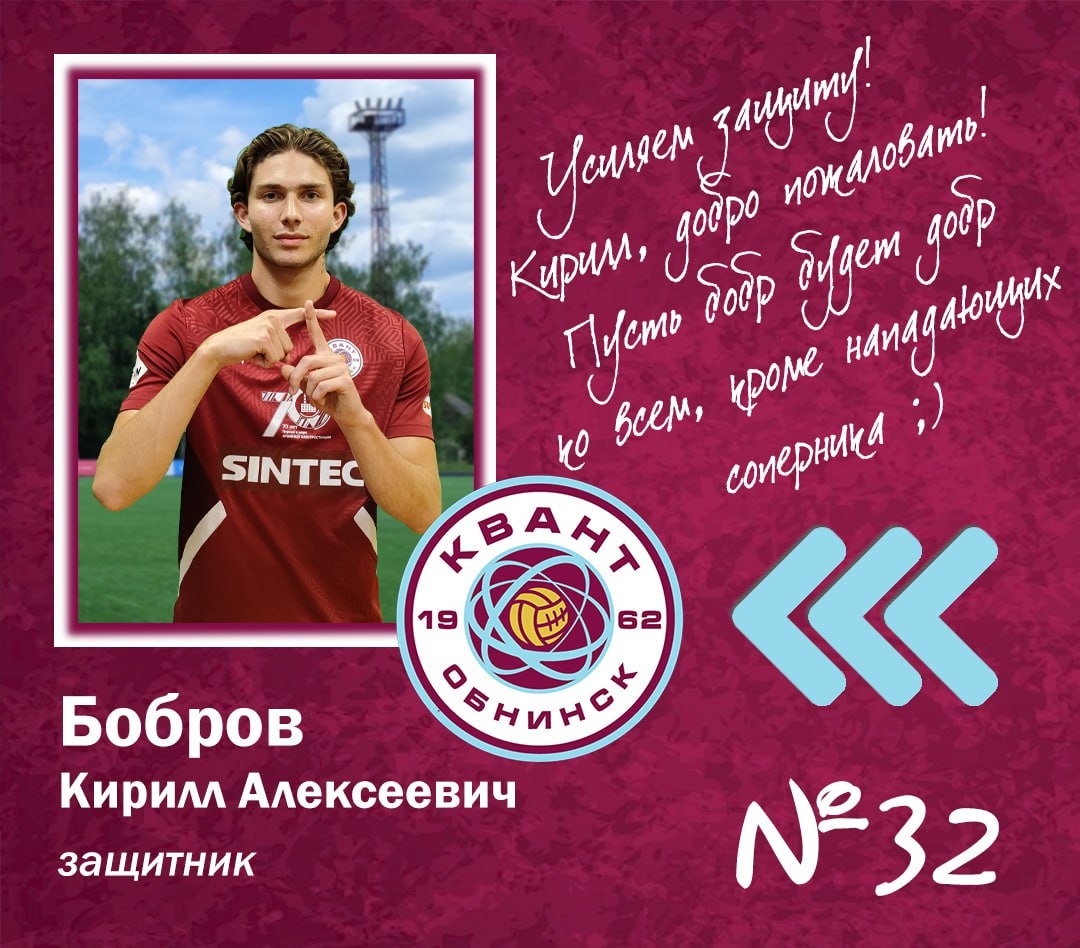 Кирилл Бобров!💪 Защитник 2005 г.р. начинал свой футбольный путь в ❤️академии ЦСКА, где провёл 9 лет. Ещё год занимался в «УОР №5 Мастер-Сатурн», а затем три года с 16 до 19 лет в академии московского ❤️Локомотива. Затем был период восстановления после травмы, когда набирал форму и выступал в различных турнирах за любительские команды. Контракт с ФК «Квант» 💠 - первый профессиональный договор в карьере Кирилла!
